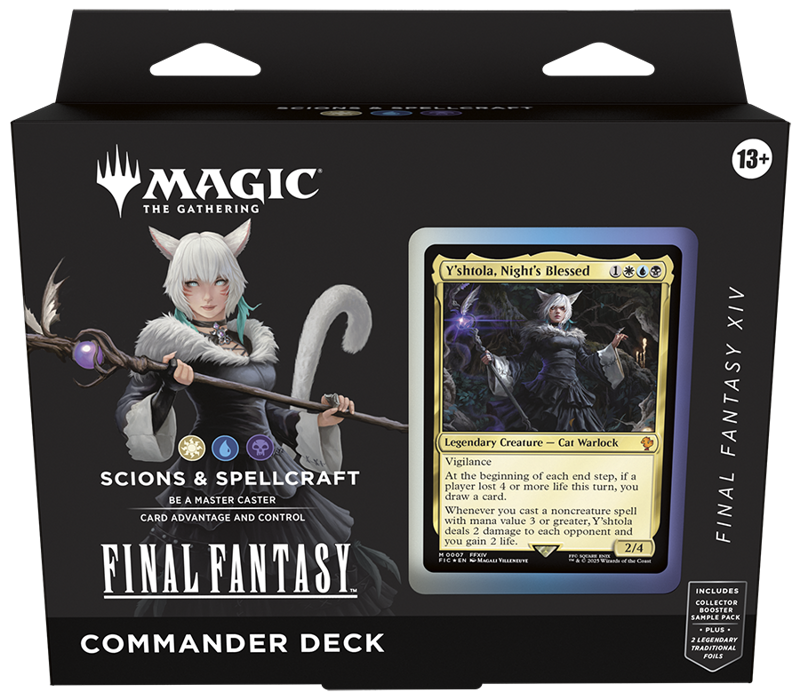 Battle your friends with FINAL FANTASY’s iconic heroes, villains, and spells in Commander, Magic’s most popular multiplayer format. Each includes 1 deck of 100 Surge Foil Magic cards, a 2-card Collector Booster Sample Pack (contains 2 alt-border cards of rarity Rare or higher, at least 1 of which is Traditional Foil), double-sided token cards (6 in Counter Blitz, 10 in the others), 1 deck box (can hold 100 sleeved cards), 1 strategy insert, and 1 reference card. This product does not contain a serialized card (available in English-language Collector Boosters only).
