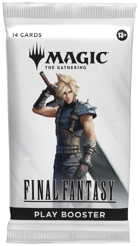 Enter battle in Magic: The Gathering with some of the most iconic characters, items, and moments from the sixteen core games in the legendary FINAL FANTASY series. Step into these unforgettable stories and give them a whole new spin! Each Play Booster contains 14 Magic: The Gathering cards and 1 Token/Ad card or Art card. (A regular Art card can be found in 30%of packs and a foil-stamped Signature Art card can be found in 5% of packs.) Every pack Includes 1–4cards of rarity Rare or higher and 3–6 Uncommon, 6–9 Common, and 1 Land cards. One card of any rarity is Traditional Foil. The Land card is also Traditional Foil in 20% of boosters. This product does not contain a serialized card (available in English-language Collector Boosters only).